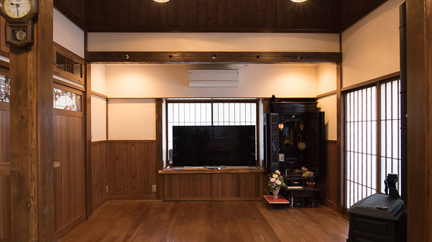 既存の建屋からの建材を活用し、純和風に家族・親族が集う場所に仕上げました