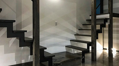 天然無垢とアイアン素材の階段が中2階のゲストルームへの入口です。