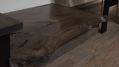 階段の1段目には天然のクスノキ(皮付き)を使用